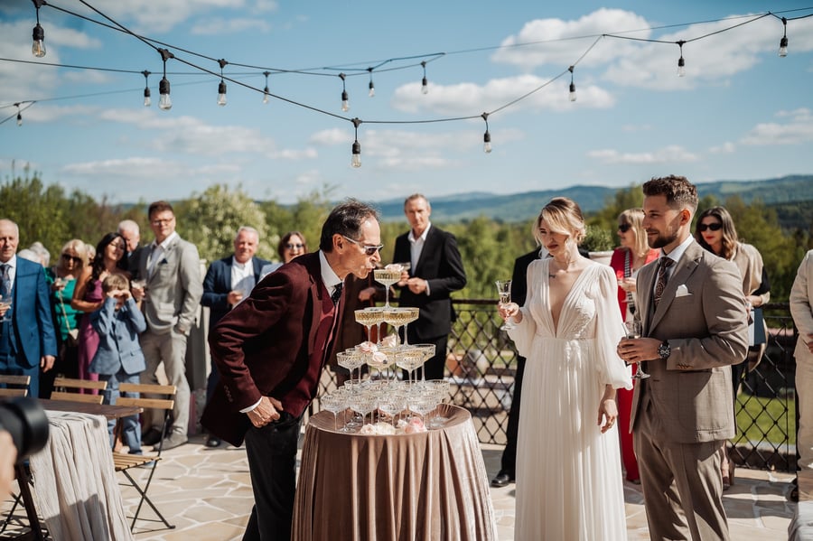 Świetnie doradził nam godzinę ślubu pod światło, pomógł ułożyć harmonogram i w dniu uroczystości po prostu był tam, gdzie trzeba. Zdjęcia są jednocześnie eleganckie i naturalne.
